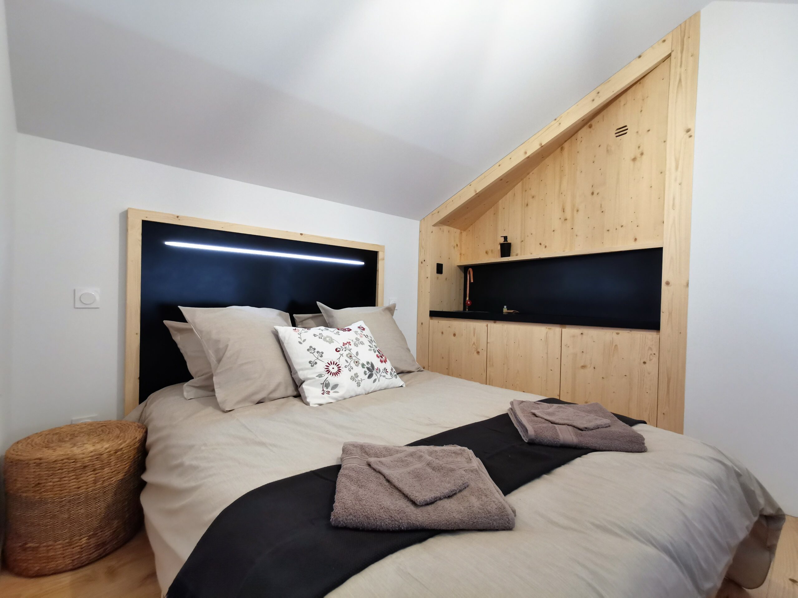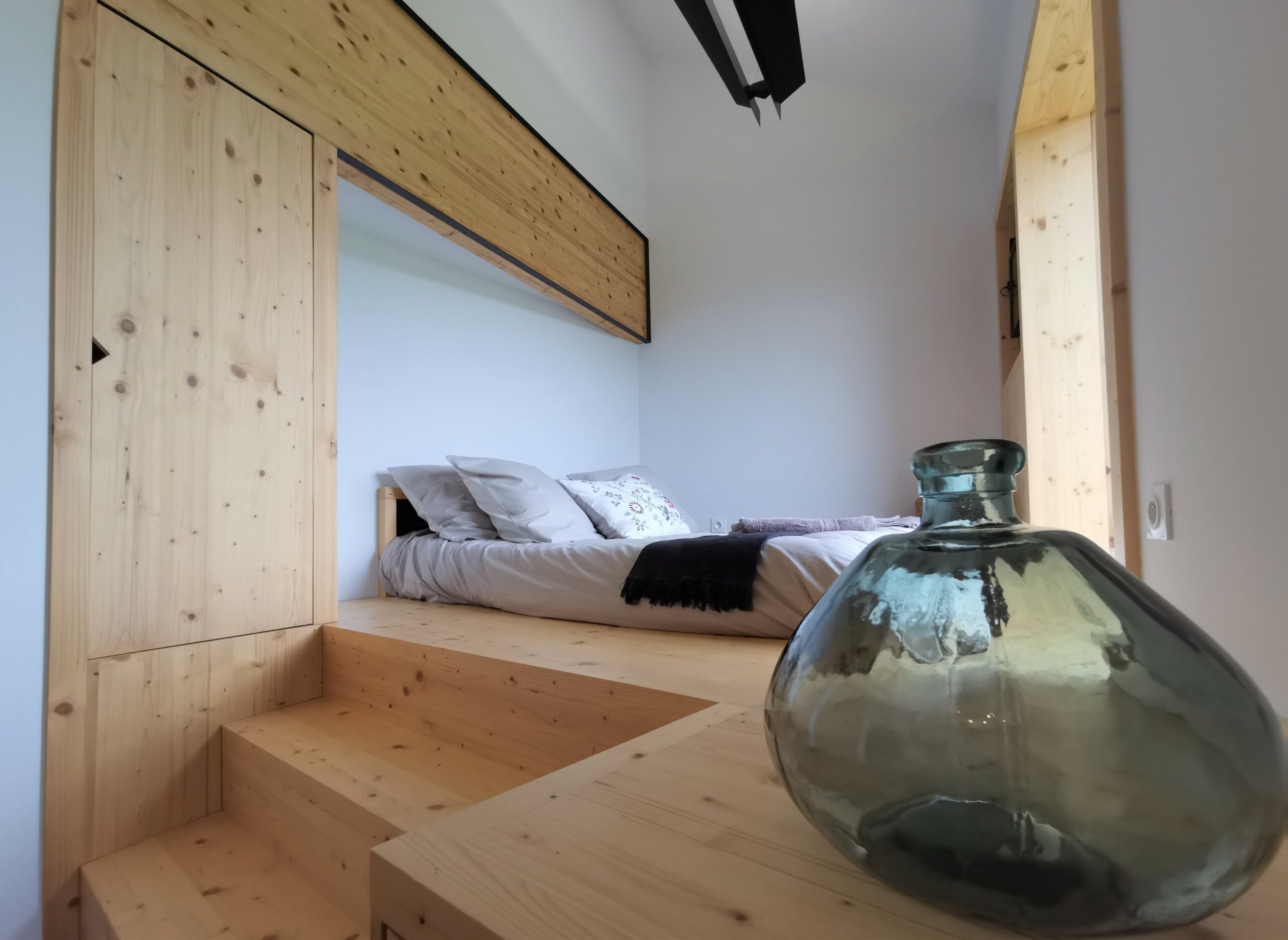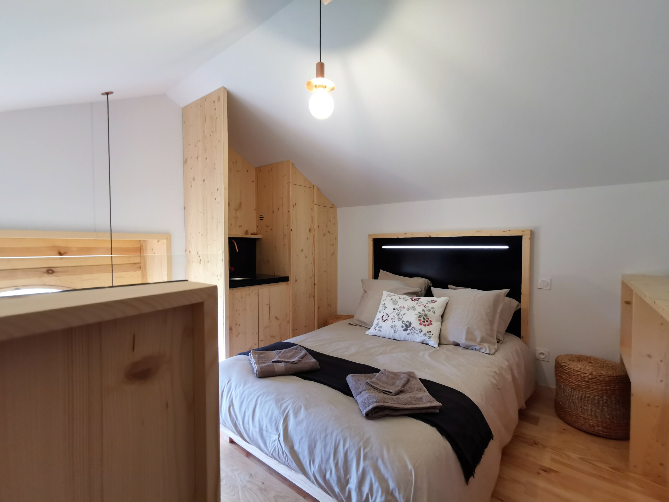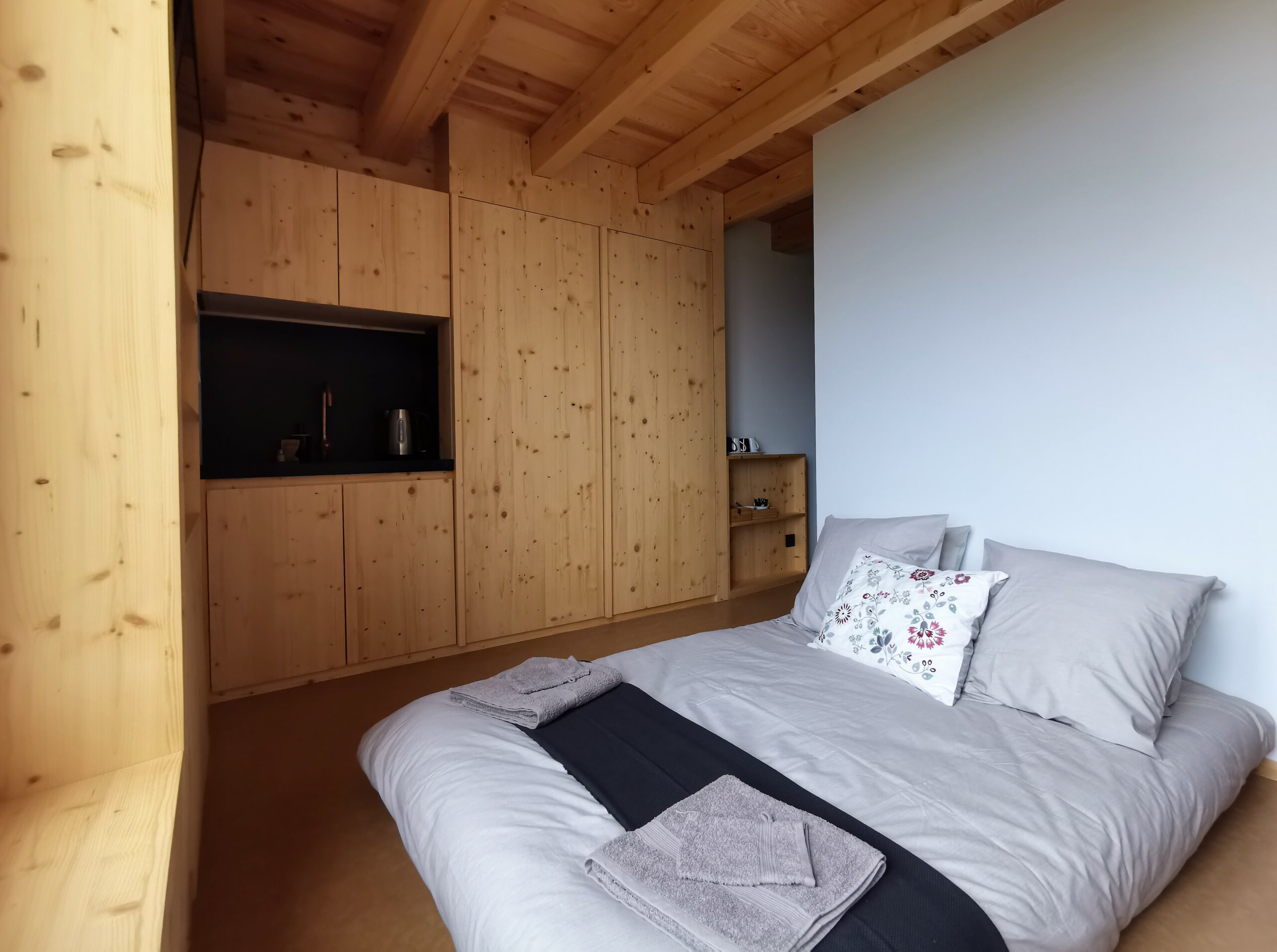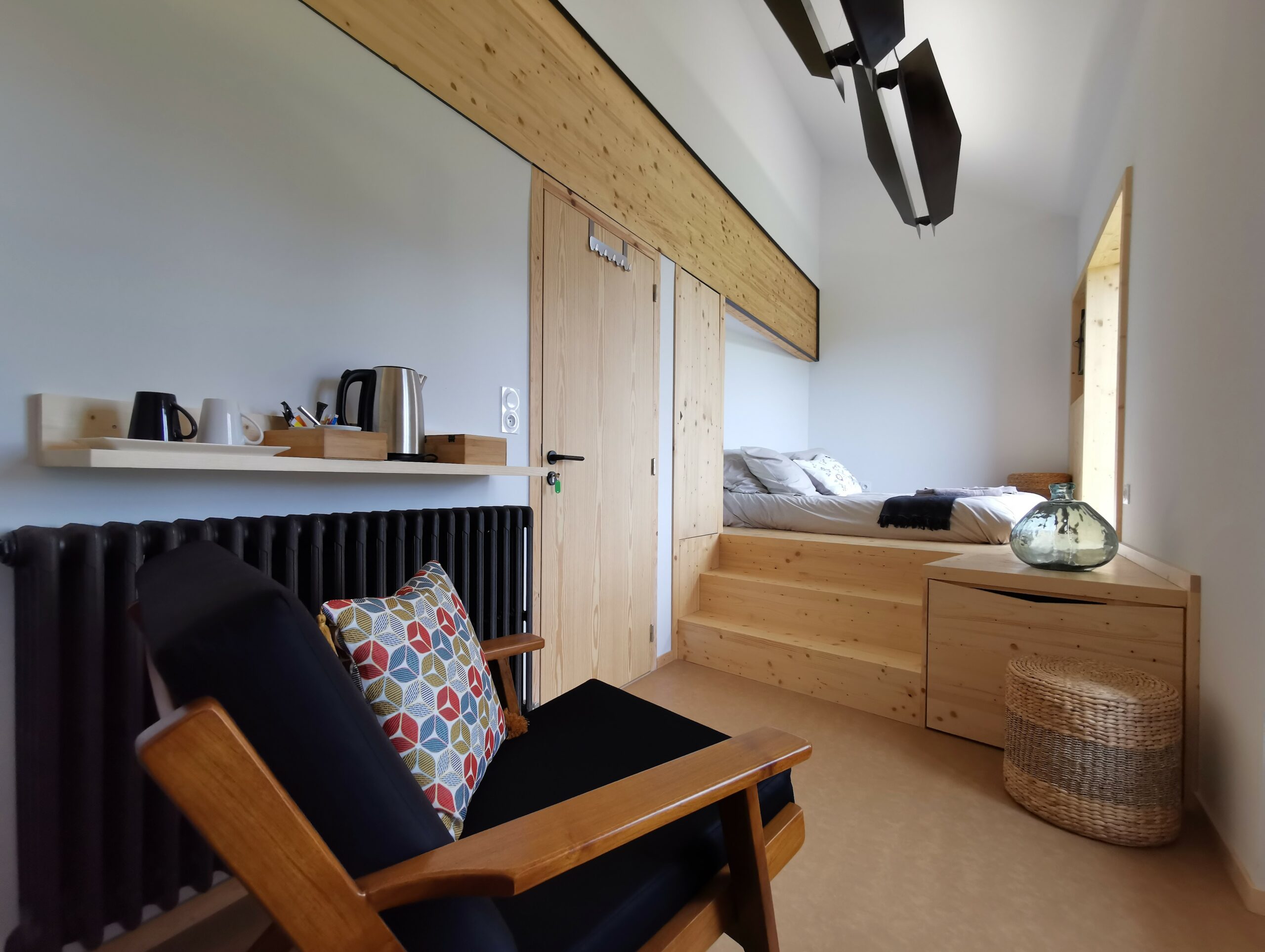 Un module : 2 pers : 1 lit 140, douche, WC, TV